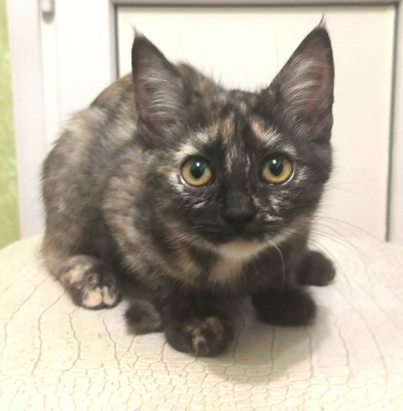 Скромная, ласковая девочка-шпротинка ждёт своего человека. Возраст 3 месяца. С лотком подружилась. В еде непривередлива. Ей необходим ответственный и заботливый человек, которые не допустит самовыгула и стерилизует по возрасту.