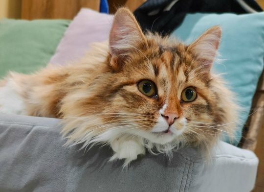 Она настоящая звезда кошачьего мира! Яркая внешность гармонично сочетается с искренним характером: эта красотка любит внимание, охотно идёт на ручки и дарит массу приятных моментов. Общительная, мягкая и невероятно обаятельная, Палаша покоряет сердца каждого, кому посчастливилось познакомиться с ней ближе.