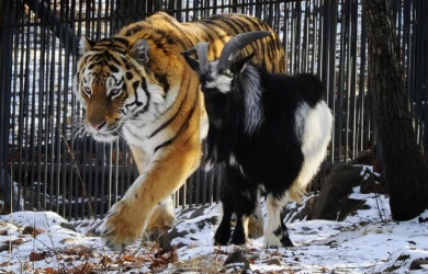 Неразлучная парочка - тигр Амур и козёл Тимур живут хорошо