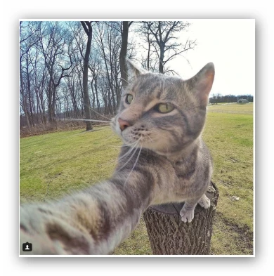 "...Многие пользователи интернета уверены, что во всемирной паутине нет ничего лучше, чем фотографии котиков. Похоже, они ошибались: в Instagram появился кот, который еще и сам себя фотографирует. Первые снимки на страничке кота были опубликованы еще 132 недели назад. Тогда владелец аккаунта выкладывал фотографии природы и других животных: собак, лошадей, птиц и т.д. Однако настоящая популярность пришла вместе с селфи-снимками кота по кличке Мэнни. На данный момент страница насчитывает более 166 тысяч подписчиков, число которых растет с каждым днем..." http://rg.ru/2016/01/25/kot-site.html Страница кота: https://www.instagram.com/yoremahm/