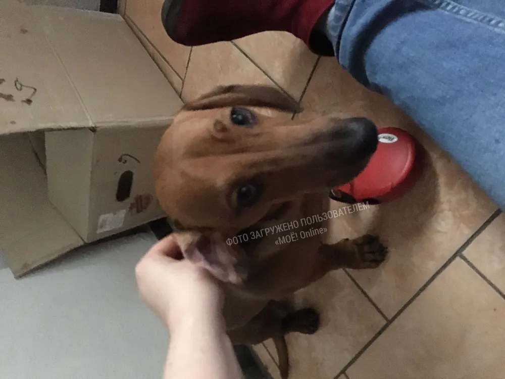 Найден песик, породы такса, рыжий окрас, мальчик расстроен, плачет. Бегал в голубом ошейнике в районе ул. 9 Января остановка Общежитие. Папа, мама откликнитесь. Ребенок напуган. тел. 89507609835