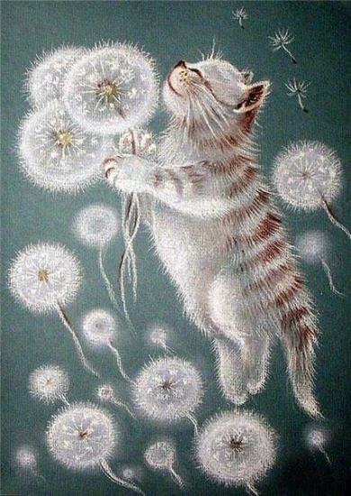 Весёлый беленький котёнок Живёт у нас почти с пелёнок. Любитель кушать и играть, Любитель шёрстку облизать. Он вверх залазит по ковру И спит на солнышке в жару, Он перед сном или едой Урчит, как будто заводной. Он на машине разъезжает И с нами дачу посещает, Он ловит бабочек и мух, За галкой мчится во весь дух! По дому ходит страшно важный, На встречных всех глядит отважно. Гроза тарелок, чашек, штор – Молочный маленький мотор! Часок подремлет безмятежно И вдруг толкает лапкой нежной - Мол, я - малыш, а ты – большой, Вот и займись игрой со мной!