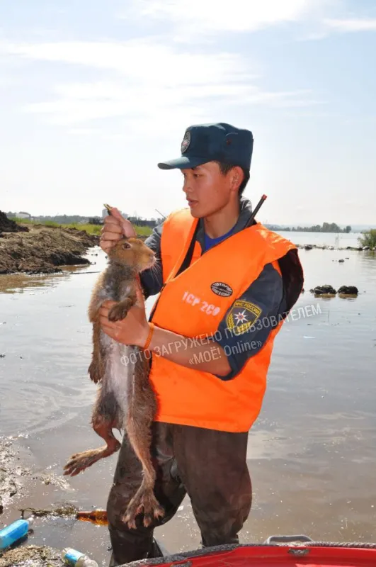 Заяц чудом избежало смерти на уходящем под воду Большом Уссурийском острове на река Амур. Со сломанной ногой он пытался забраться на забор, но у него это плохо получалось. Но повезло, что рядом оказались сотрудники МЧС. Спасатели упаковали ушастого в мешок и отвезли в ветеринарную клинику. После лечения заяц, скорее всего, будет жить в хабаровском зоосаде.