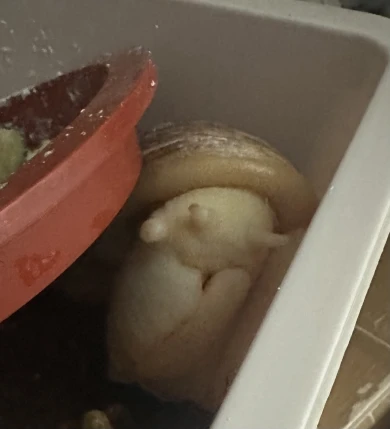 День назад сидела в похожем положении, только прилеплена к контейнеру и вытянула свой рот как бы в трубочку. Так же заметила как будто опухшую мантию. Все ********* к фото. Переживаю, потому что раньше улитка так себя не вела, температура в контейнере комнатная ( 23-24) уборку провожу каждые два дня, последние дни питались салатными листьями, кальцесмесью и морковью, влажность в норме, присутствует кокосовый коврик. Может кто-то сталкивался с такой проблемой?