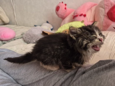 Здравствуйте, мне иногда приходится спасать малышей с улицы, лечить и искать им дом, видела уже достаточно разных котят, но такого встречаю впервые, у него очень выразительная и необычная мордочка, подобрали его на обочине (явно кто-то выкинул), в ветклинике обнаружили вирусную инфекцию, появилось предположение, что из-за этого его выкинули, подскажите, кто хорошо разбирается в породах, может этот малыш имеет какую-то породу? Или это всё-таки простой, но необычный по внешности котёночек?