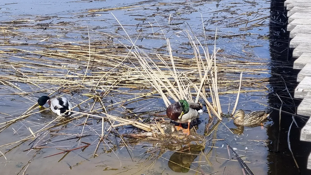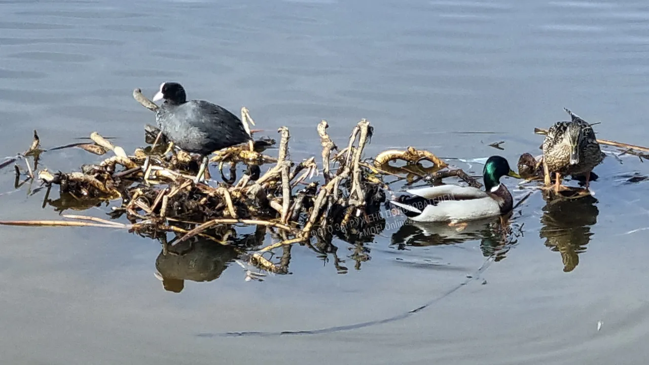 И эти острова облюбовали водоплавающие птицы: лысуха, утка кряква и селезень.